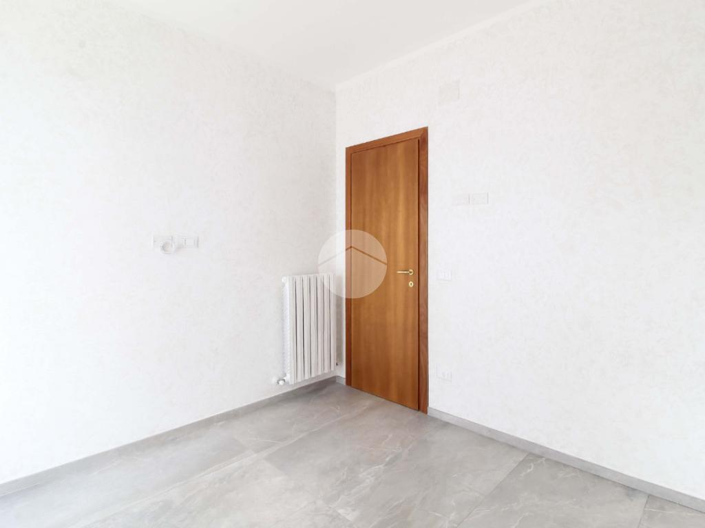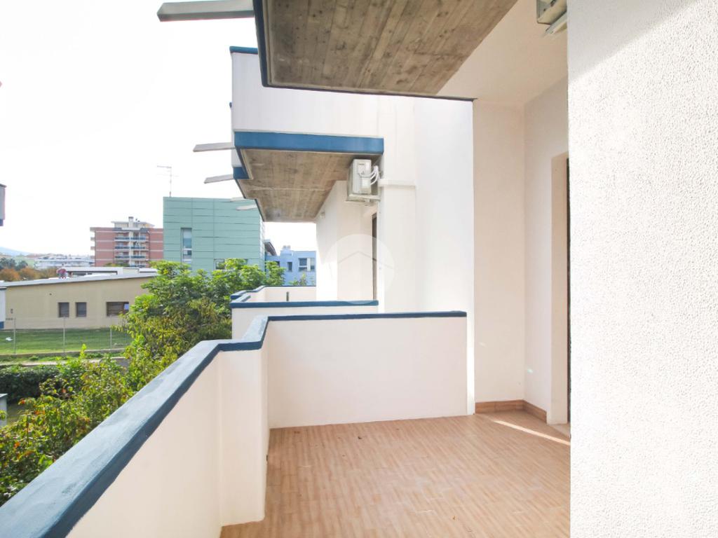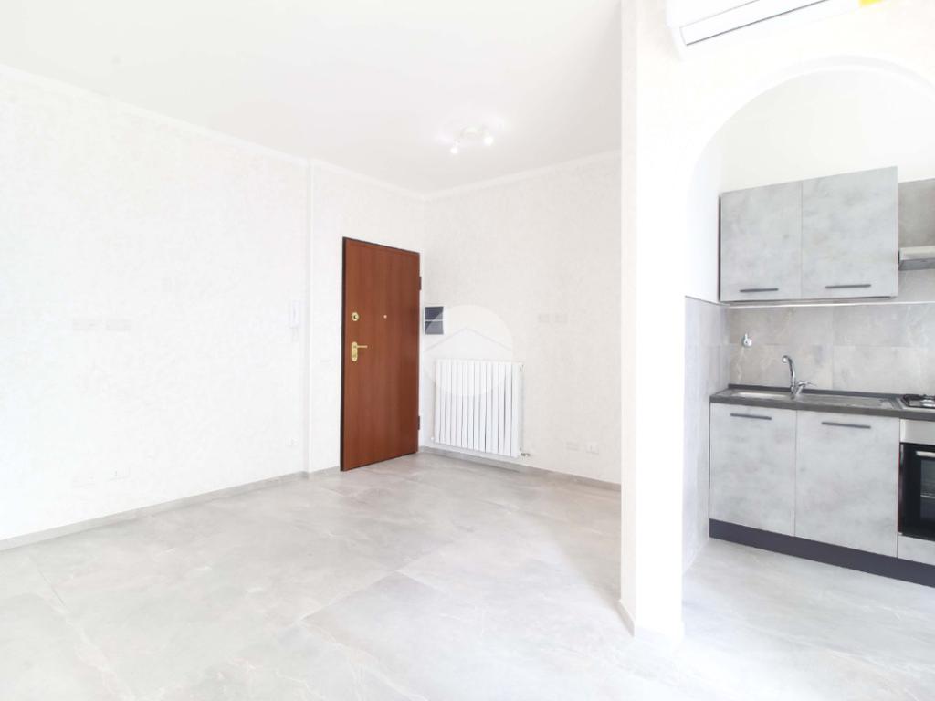 L'appartamento si apre su un luminoso soggiorno con cucinotto a vista, una soluzione moderna che favorisce la convivialità senza sacrificare l'ordine, i quali affacciano su un comodo balcone dotato di lavabo, perfetto per le necessità quotidiane.