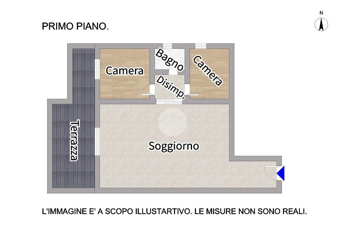 L'ingresso si apre su un'accogliente e moderna zona giorno, pensata in un pratico open space che integra il soggiorno e l'angolo cottura con accesso al terrazzo abitabile perfetto per pranzi e cene all'aperto anche nei mesi invernali.