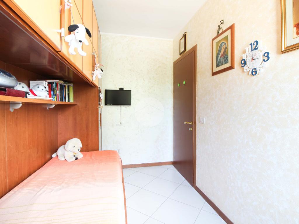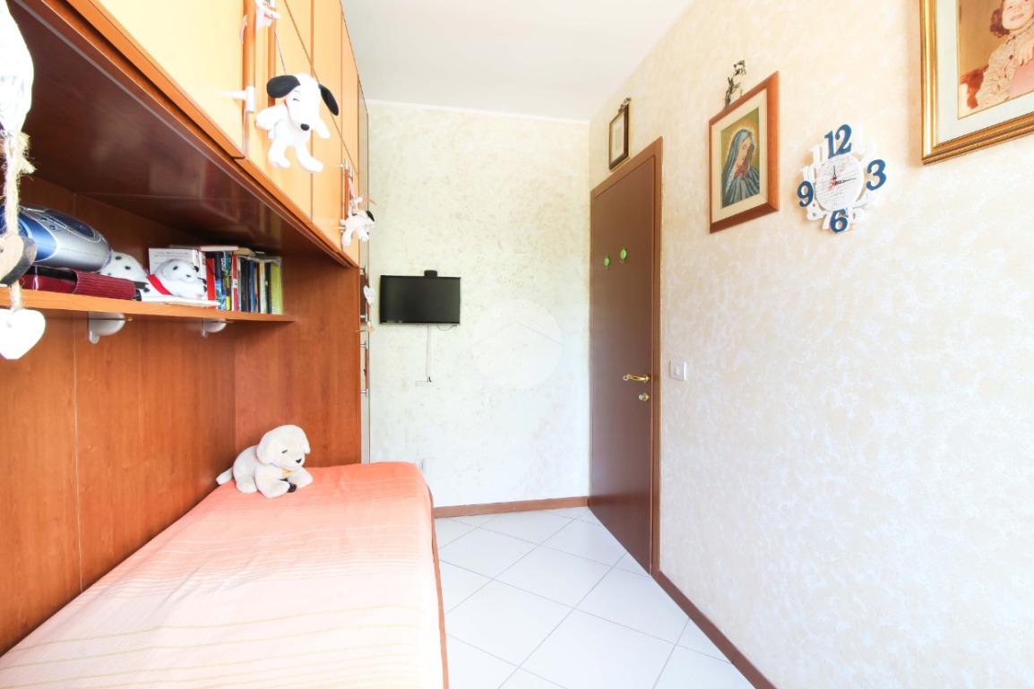 La zona notte, ben separata è composta da una camera matrimoniale che accede al terrazzo, una cameretta e un bagno moderno con box doccia e finestra.