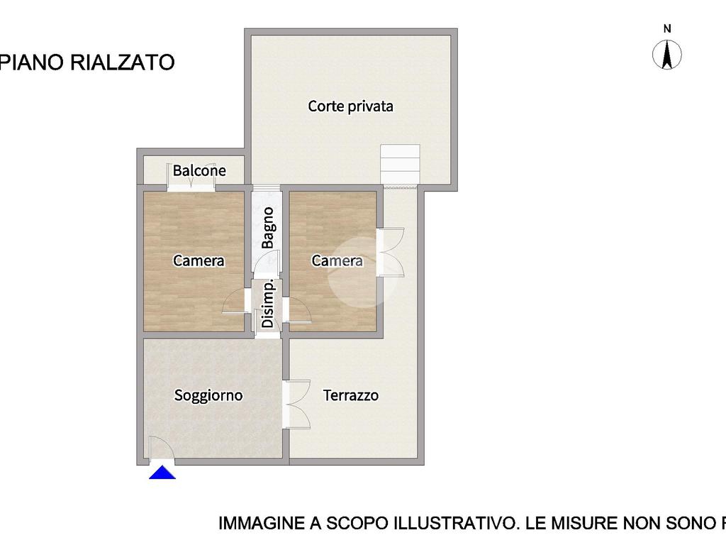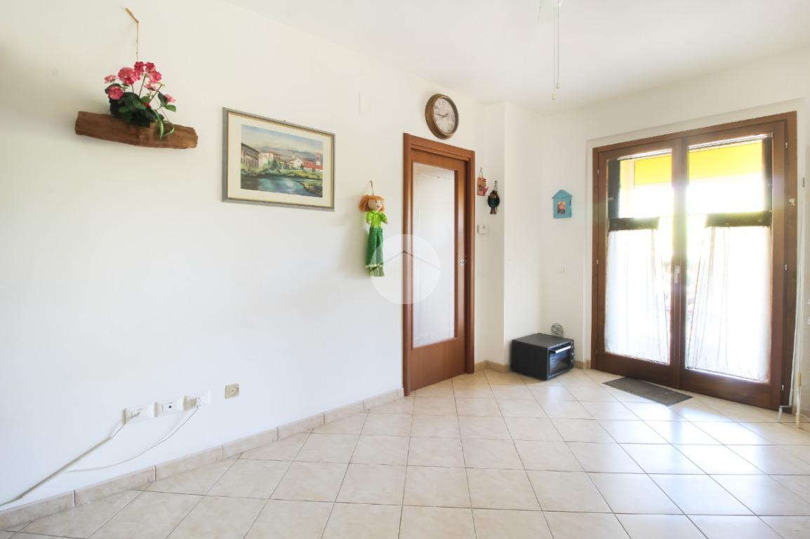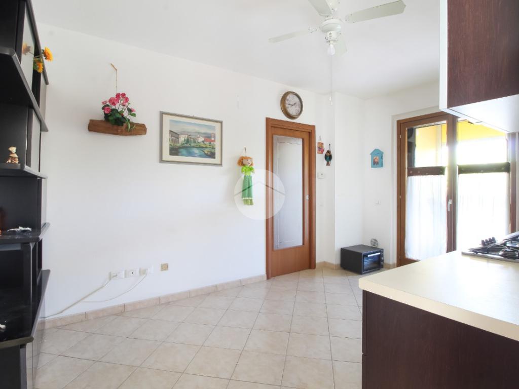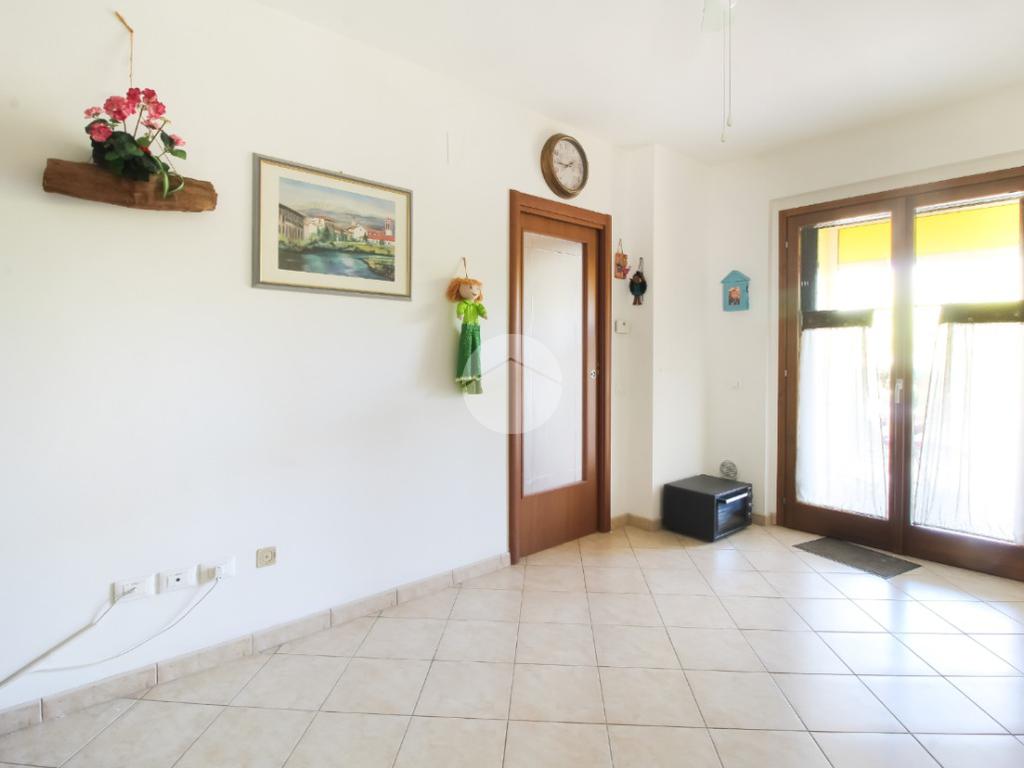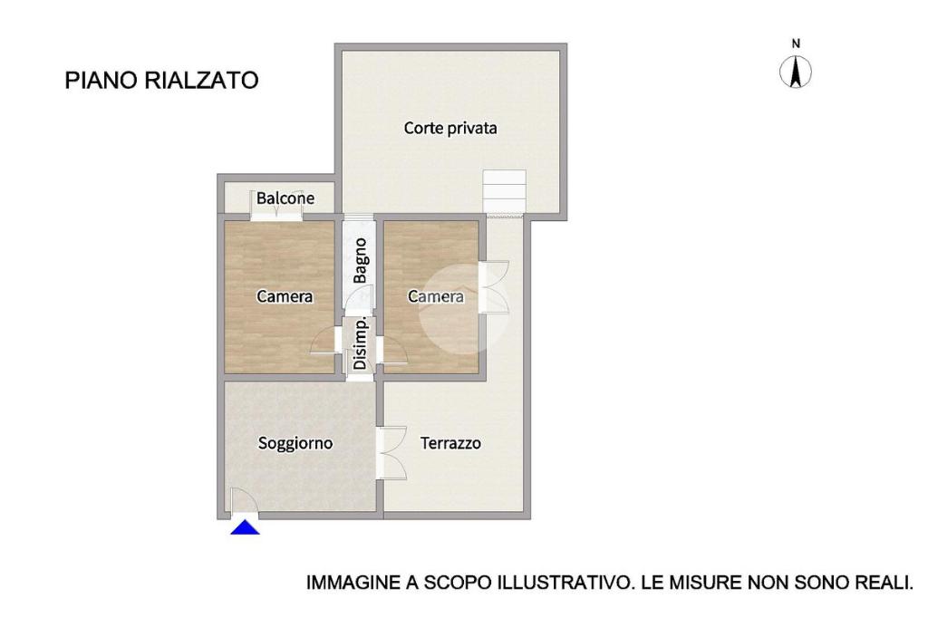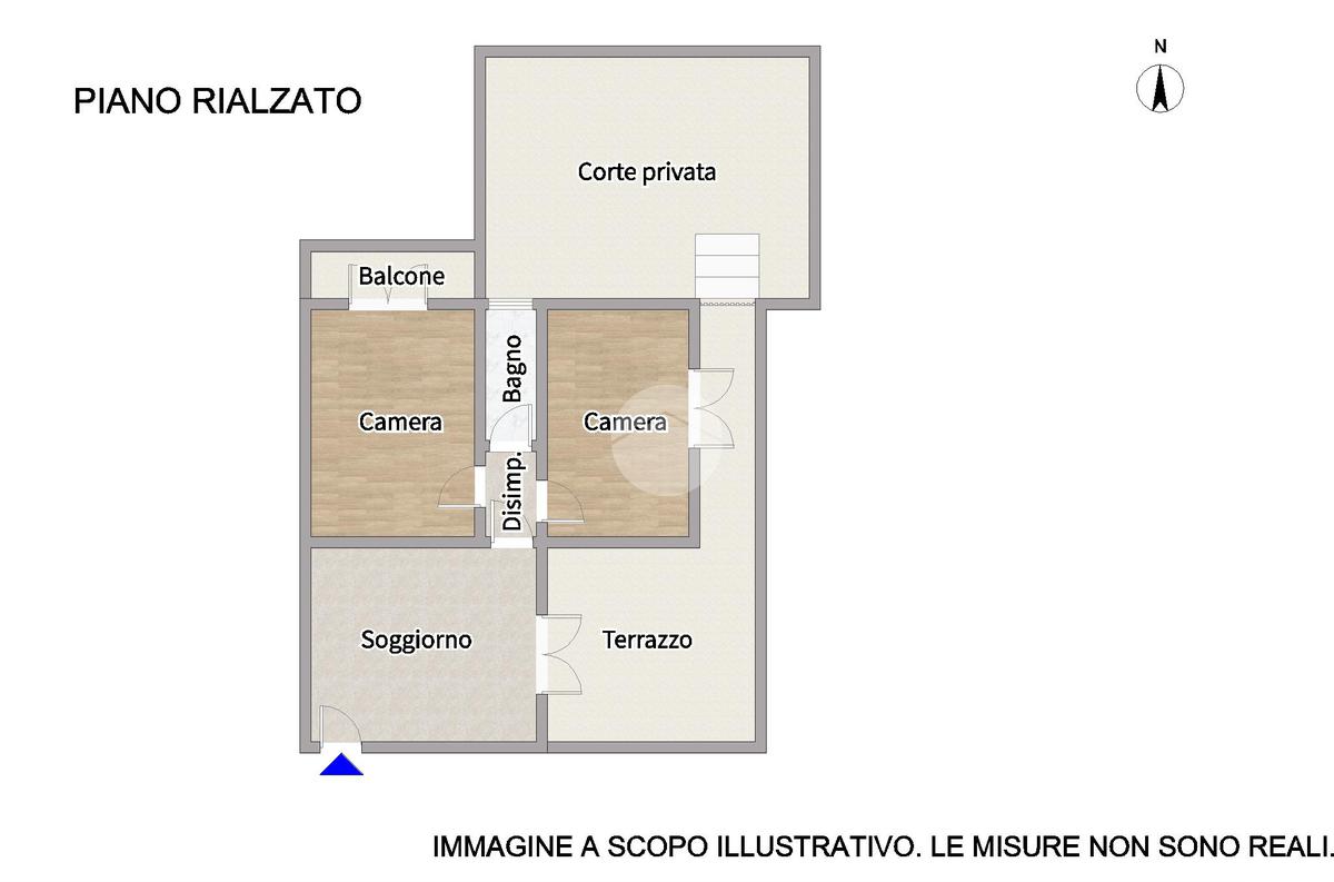 L’ingresso si apre su un’accogliente zona giorno con angolo cottura e accesso al terrazzo abitabile, collegato alla corte esterna privata e posto auto.