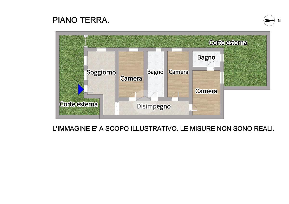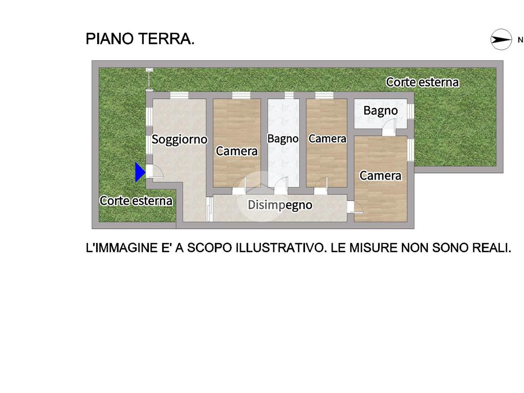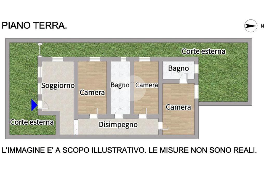 La proprietà vanta una corte esterna esclusiva, in parte pavimentata e in parte destinata a giardino privato, ideale per momenti di relax all'aperto.