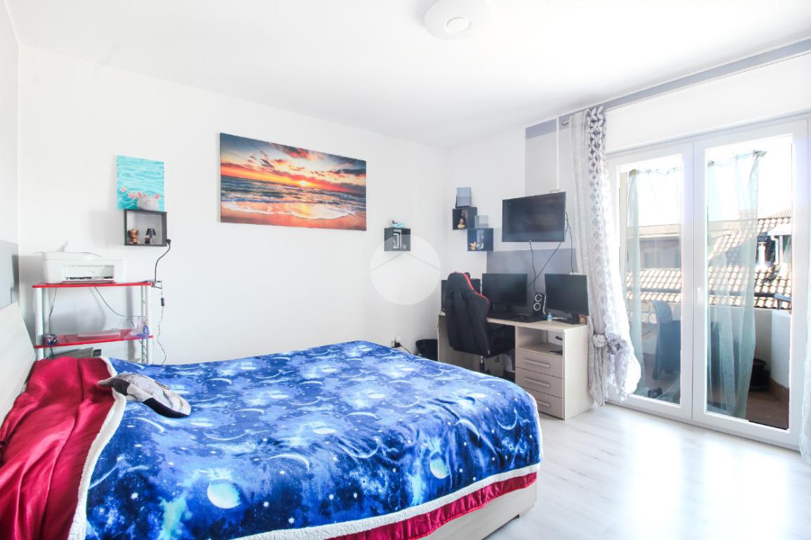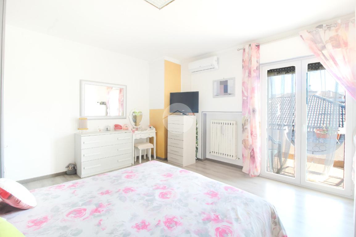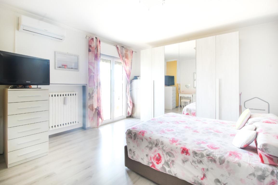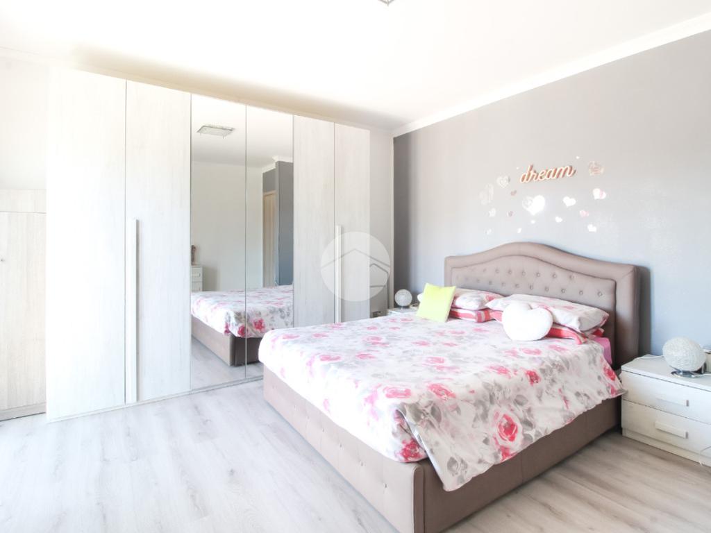Una seconda camera matrimoniale anch'essa si affaccia su un ulteriore balcone angolare privato e un bagno finestrato, rifinito con cura e dotato di box doccia.