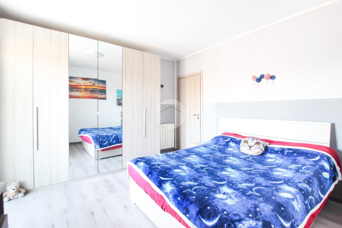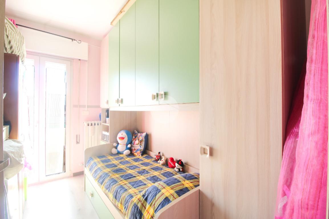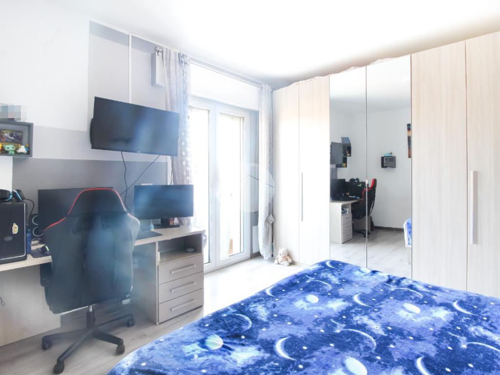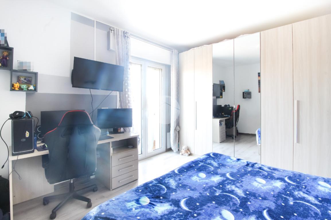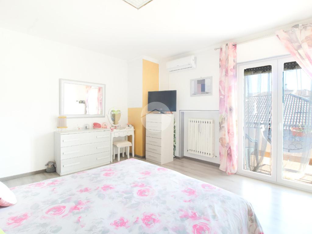 Una seconda camera matrimoniale anch'essa si affaccia su un ulteriore balcone angolare privato e un bagno finestrato, rifinito con cura e dotato di box doccia.
