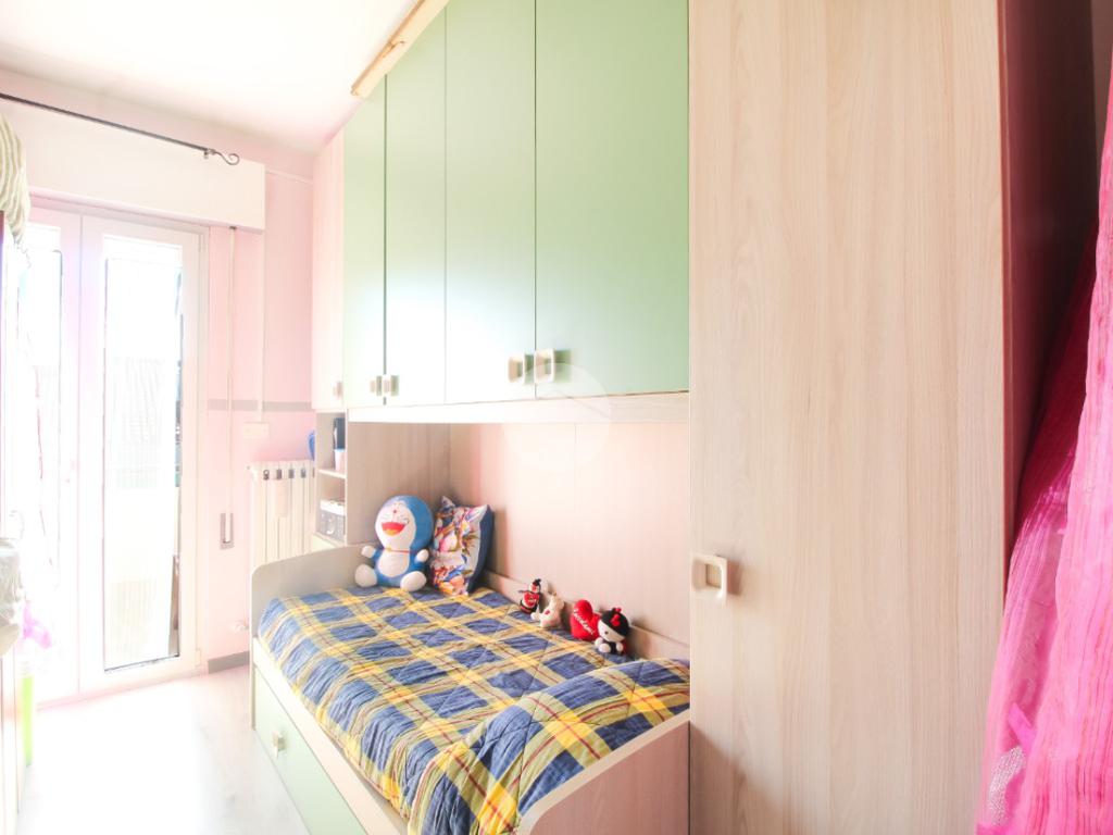 Un pratico disimpegno conduce alla zona notte composta da una spaziosa camera matrimoniale e una cameretta, entrambe servite da un primo balcone angolare.