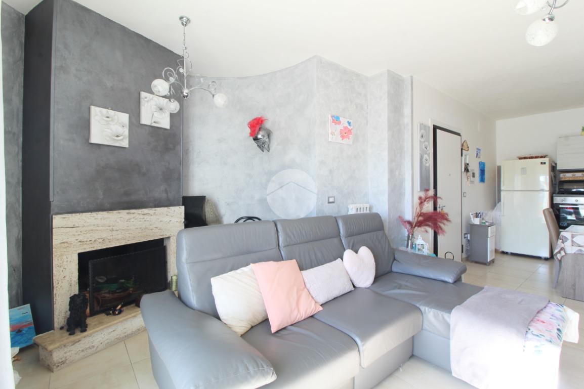 L'ingresso si apre su un accogliente soggiorno open space con cucina a vista, un ambiente reso unico dalla presenza di un moderno camino e caratterizzato da una grande luminosità.