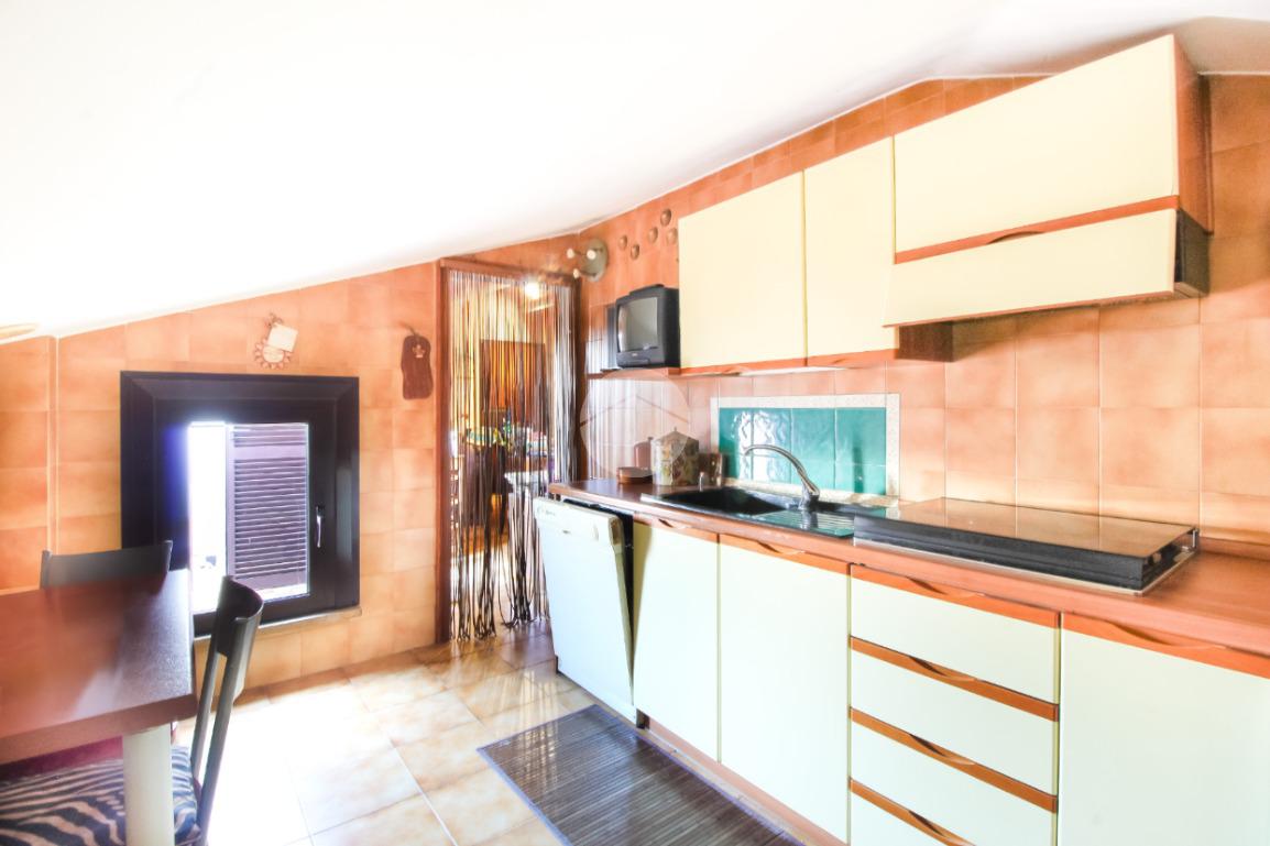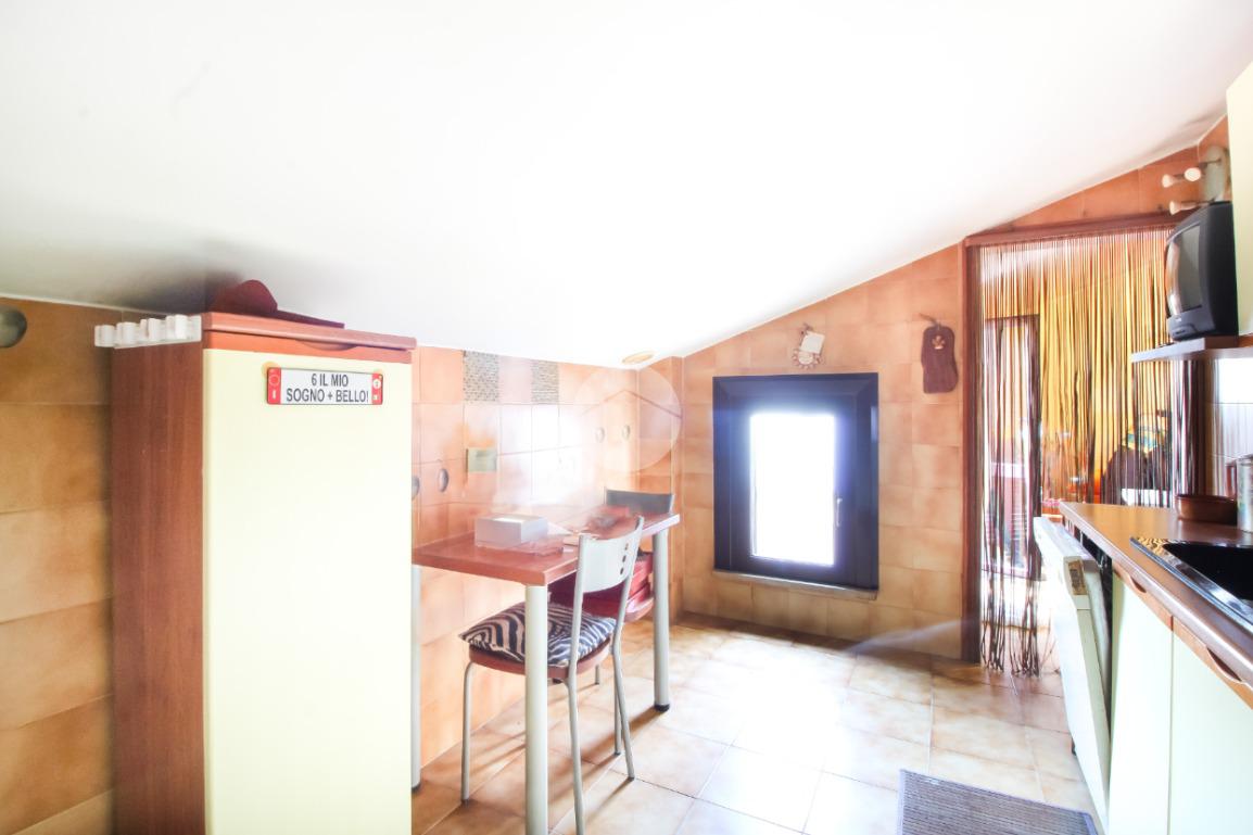 Entrando ci accoglie un accogliente soggiorno con cucina abitabile. Entrambi gli ambienti godono di un accesso diretto a un ampio terrazzo, ideale per cene estive o momenti di relax.