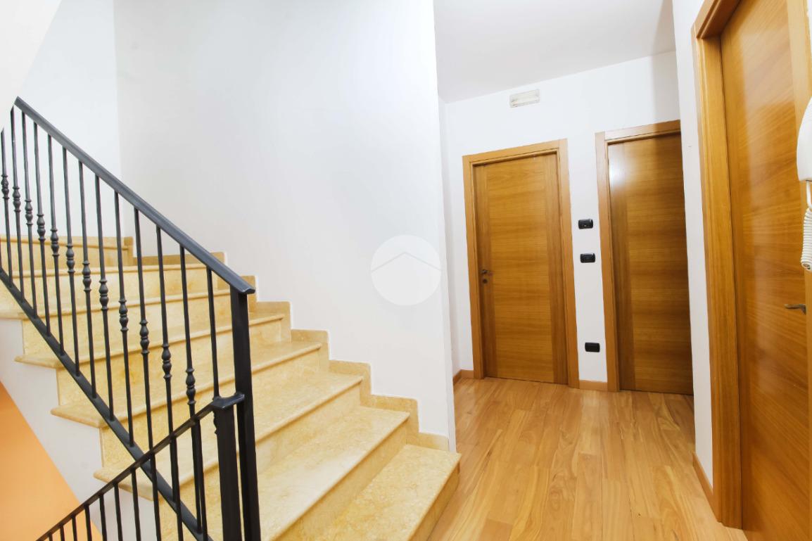 Salendo la scalinata interna, scopriamo il primo piano dedicato alla zona notte: due camere matrimoniali di cui una con cabina armadio e balcone, una cameretta con ulteriore balcone. Un elegante bagno finestrato con box doccia garantendo praticità e luminosità.